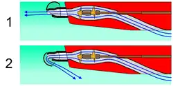 Los hidrojet sufren el efecto Coandă, esto se debe tener en cuenta cuando se hacen cambios de dirección, haciendo necesario ajustar unos grados más allá de lo que normalmente haría falta, por razón de este efecto.