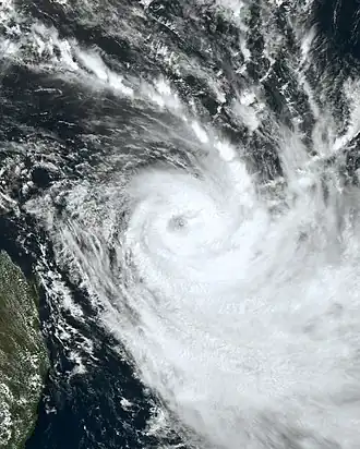 ![]() Vista en la imagen satélite, el ciclón tropical severo Gabrielle cerca de su máxima intensidad el 10 de febrero de 2023 | ||