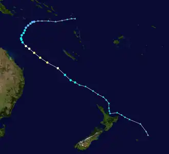 El ciclón tropical severo Gabrielle fue un ciclón tropical extremadamente intenso que golpeó la Isla Norte de Nueva Zelanda, así como partes de Vanuatu y Australia. Es considerado como el ciclón tropical más costoso registrado en el hemisferio sur, con daños estimados en al menos 13.5 mil millones de dólares neozelandeses (8.42 mil millones de dólares estadounidenses), y además fue el ciclón más intenso en azotar Nueva Zelanda desde el ciclón Giselle en 1968, superando al ciclón Bola en 1988.[1][2][3] La quinta tormenta con nombre de la temporada de ciclones en la región australiana de 2022-23 y el primer ciclón tropical severo de la temporada de ciclones en el Pacífico Sur de 2022-23. Gabrielle se notó por primera vez como una baja tropical en desarrollo el 6 de febrero de 2023, mientras que estaba ubicado al sur de las Islas Salomón antes de que fuera clasificado como ciclón tropical y nombrado Gabrielle por la Oficina de Meteorología. El sistema alcanzó su punto máximo como un ciclón tropical severo de categoría 3, antes de trasladarse a la cuenca del Pacífico Sur, luego degeneró rápidamente en una baja subtropical el 11 de febrero de 2023.