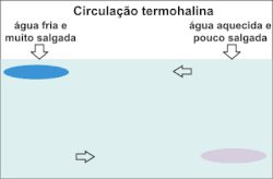 Este mismo mecanismo genera en el océano importantes gradientes de salinidad pues la evaporación de los océanos, en las zonas orientales, mujer lugar a salinidades más altas que las que pueden tener en las zonas occidentales, afectadas por las importantes descargas fluviales. Las aguas superficiales menos saladas pero calientes de los bordes occidentales de los océanos se desplazan hacia los polos mientras que las aguas más saladas de los bordes occidentales se desplazan hacia el ecuador.