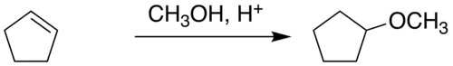 2) Mediante la adición de metanol al ciclopenteno. Este segundo método es mejor desde el punto de vista de la química sostenible ya que no produce subproductos.