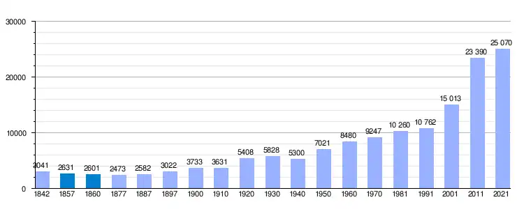 | Gráfica de evolución demográfica de Ciempozuelos[9] entre 1842 y 2021 |