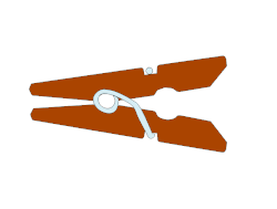 Formada por tres piezas: dos brazos (de madera o plástico) y un muelle con palancas. El muelle se monta a presión, insertando las palancas en las ranuras de los brazos. El muelle queda con cierta tensión. La forma de los brazos y del muelle, y la tensión inicial, aseguran una unión estable del conjunto. Y permiten los movimientos de funcionamiento: abrir, cerrar y proporcionar una fuerza de sujeción.