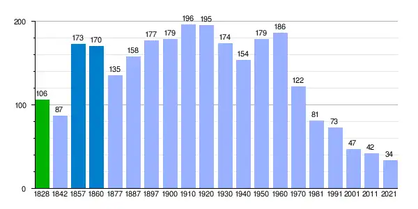 Población según el Diccionario geográfico-estadístico de España y Portugal de Sebastián Miñano.[5] Población de derecho según los censos de población del INE. Población de hecho según los censos de población del INE. |