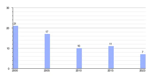 | Gráfica de evolución demográfica de Cimadevila entre 2000 y 2023 |
