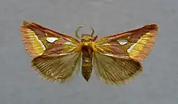 - ↑ Shen-Horn Yen & Joël Minet (2007). «Cimelioidea: a new superfamily name for the gold moths (Lepidoptera: Glossata)» (PDF). Zoological Studies 46 (3): 262-271. Archivado desde el original el 4 de octubre de 2013. Consultado el 29 de octubre de 2012.