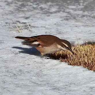 - ↑ Dark-bellied Cinclodes (Cinclodes patagonicus) en Handbook of the Birds of the World - Alive (en inglés). Consultada el 3 de enero de 2019.