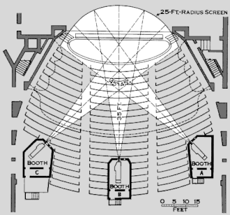 - ↑ Dempewolff, Richard F. (Aug 1952). "Movies on a Curved Screen Wrap You in Action". Popular Mechanics. 98 (2): 120–124+. ISSN 0032-4558. Retrieved 6 October 2012.