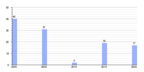 | Gráfica de evolución demográfica de Cinsa entre 2000 y 2020 |