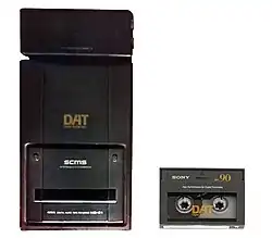 La Cinta de Audio Digital, (del inglés Digital Audio Tape y abreviado DAT) fue un medio de grabación y reproducción de señal de audio digitalizado, el cual fue desarrollado y presentado por la empresa japonesa Sony en 1987.[1][2] Fue el primer formato de casete digital comercializado y, en apariencia, es similar a un casete convencional de audio, que usa cinta magnética de 4 mm de ancho encapsulada en una carcasa protectora, pero es aproximadamente la mitad del tamaño con 73 mm × 54 mm × 10,5 mm.