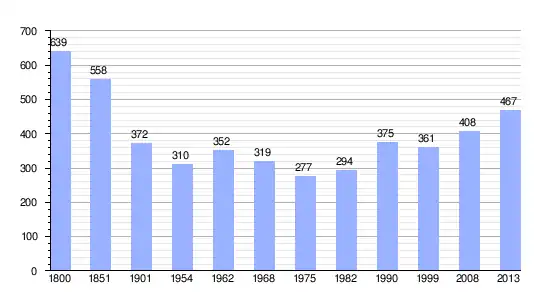 Los datos demográficos contemplados en este gráfico de la comuna de Cintray[4] se han cogido de 1800 a 1999 de la página francesa EHESS/Cassini, y los demás datos de la página del INSEE.[5]