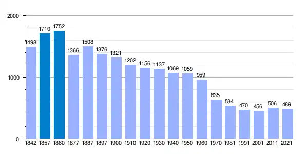 | Gráfica de evolución demográfica de Cirauqui/Zirauki[3] entre 1842 y 2021 |