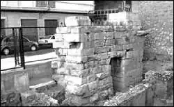 El primero en realizar excavaciones metodológicas en el circo fue Chabret (1888, II, 80-87) que documentó la porta triumphalis (2,84m de luz) en el extremo oriental del edificio y observó que las carriladas marcadas en su pavimento de piedra tenían una distancia entre las ruedas de 1,70m. También descubrió la spina con el euripus así como algunas conducciones hidráulicas. Pero, sin duda, la mayor aportación a su conocimiento se debe a Brú i Vidal (1963: 207-226) cuyo trabajo aprovechó Humphrey (1986: 344-350). Después de la edificación de viviendas modernas, el único testimonio visible es una puerta secundaria que abre a la calle Huertos (Chiner 1990: 160). Se trata de una puerta meridional secundaria (1,20m de luz), construida con sillares de gran tamaño, no documentados en el resto del edificio. A lo largo de 6,70m y con una altura conservada de 5,20m, aparece la estructura a través de la cual se entraba a una tribuna del circo, pasando por un corredor de 2,10m de longitud. Sobre la puerta aparecen dos basas con una moldura en forma de kyma reversa relacionadas con el alzado de la fachada.