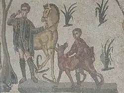 Escena de caza con un Cirneco del Etna - Mosaico de la villa del Casale, Sicilia.