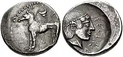 Moneda de Segesta con un cirneco en el anverso, 400 a. C.