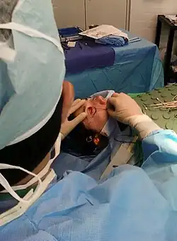 - Dacriocistorrinostomía externa o endoscópica (DCR) para la obstrucción del conducto nasolagrimal.[9]
