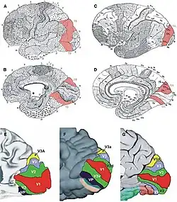 - ↑ a b c d Geyer S, Weiss M, Reimann K, Lohmann G, Turner R. (2011). «Microstructural Parcellation of the Human Cerebral Cortex -From Brodmann's Post-Mortem Map to in vivo Mapping with High-Field Magnetic Resonance Imaging.». Front Hum Neurosci.