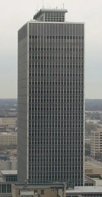 El edificio abrió en 1962 después de dos años de construcción,[1] a un costo de 22 millones de dólares.[2] Fue el primer edificio de Indianápolis en ser más alto que el Monumento Círculo, y fue el edificio más alto de esa ciudad hasta 1970.[1] La superficie total del edificio cubre 68 232 m².[3]