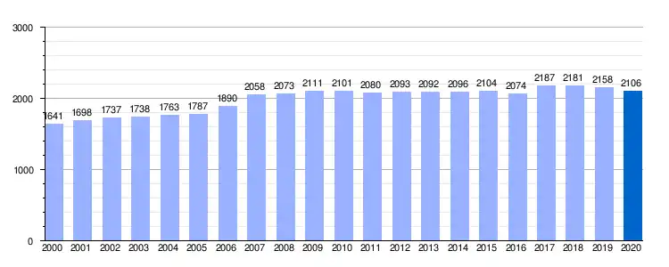 | Gráfica de evolución demográfica de Ciudad Jardín Virgen del Milagro entre 2000 y 2020 |