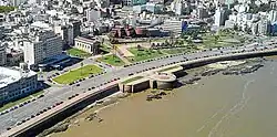 La Rambla de Montevideo fue concebida aquí como una vía de circulación rápida, para facilitar el nutrido transporte desde y hacia el Puerto de Montevideo.