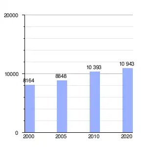 En 2020 el 48% de la población (5254 personas) eran hombres y el 52% (5689 personas) eran mujeres. El 60.1% de la población, (6580 personas), tenía edades comprendidas entre los 15 y los 64 años.[5]