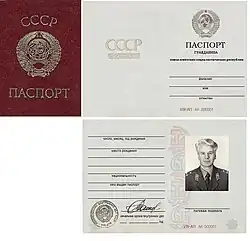 La República Socialista Soviética de Ucrania se convirtió en una república fundadora de la Unión Soviética en 1922.[10] La Constitución de la Unión Soviética de 1924 afirmó la «ciudadanía de la Unión única» para los ciudadanos de todas las repúblicas de la Unión.[11] La Constitución de la RSS de Ucrania de 1929 declaró que todos los ciudadanos de la misma también eran ciudadanos de la Unión Soviética.[12] Las sucesivas constituciones soviéticas mantuvieron este arreglo.[13][14][15][16]