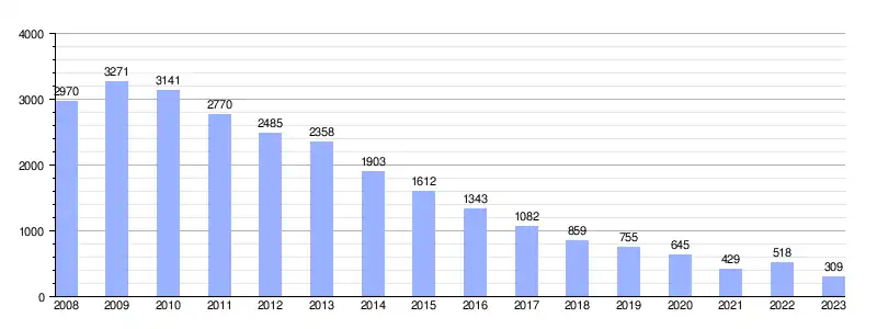 | Gráfica de evolución de la deuda viva del Ayuntamiento entre 2008 y 2023 |