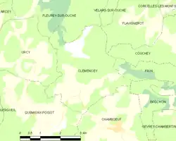 ![]() Clémencey Localización de Clémencey en Borgoña-Franco Condado | ||