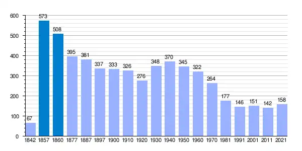| Gráfica de evolución demográfica de Clariana de Cardener[2] entre 1842 y 2021 |