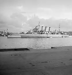 El Shropshire, al contrario que sus gemelos, mantuvo la torreta "X" y los torpedos durante toda su carrera, y fue transferido a la RAN a comienzos de 1943 para reemplazar al Canberra.