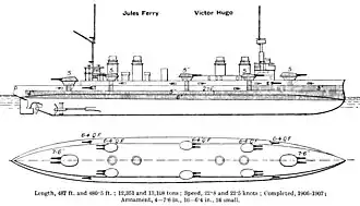 El Victor Hugo también fue construido en Lorient y formó parte de la Flota del Mediterráneo durante la Primera Guerra Mundial.