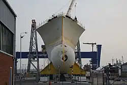 - ↑ «Shipyard completes key stage in aircraft carrier project». North Devon Journal. Archivado desde el original el 17 de febrero de 2010. Consultado el 26 de febrero de 2010.