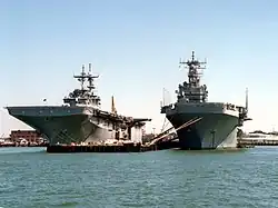 ![]() USS Wasp, cabeza de su clase, navegando el 4 de octubre de 2007. | ||