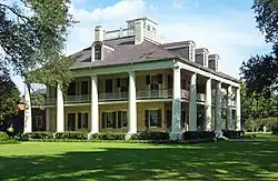Una casa de los plantadores servía para agrupar a la familia del propietario, los invitados y los esclavos domésticos dentro de una gran estructura en una ubicación central en la finca. A menudo, comenzando como una morada modesta, la casa fue ampliada o reemplazada por una casa más nueva e impresionante a medida que crecía la riqueza del plantador. Comúnmente se ve la adición de enormes columnas del Renacimiento griego, escaleras curvas, alas adosadas y otros elementos arquitectónicos populares en ese momento.