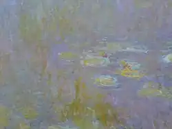 Inspirado en el ambiente de sus jardines en Giverny, inició en 1906 la serie de cuadros muy grandes sobre plantas florales acuáticas, (los cuadros de ninfeas y nenúfares que pueden admirarse actualmente en el museo parisino de La Orangerie).