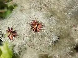 Clematis: nombre genérico que proviene del griego klɛmətis.[2]​ (klématis) "planta que trepa".