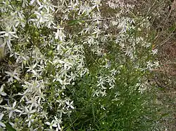 Es una planta perenne, trepadora, que utiliza las hojas para trepar, enroscando los peciólulos en las ramillas de los arbustos vecinos. Puede llegar a medir más de 5 m, aunque por lo común es mucho más pequeña. Semileñosa y perennifolia, aunque en los lugares más fríos puede llegar a quedar desnuda en invierno. Las hojas son bipinnatisectas, es decir, están divididas en dos órdenes de folíolos. Estos son estrechos, aunque las plantas son algo variables para esta característica. Las flores son blancas, muy aromáticas, de unos 3 cm de diámetro, y se abren en verano. Se agrupan en cimas.