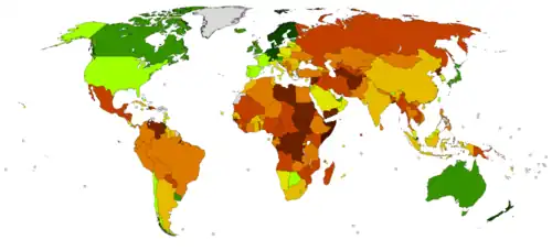 | >80 70–79 60–69 50–59 | 40–49 30–39 20–29 10–19 | <10 Desconocido |