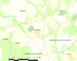 Clermont es una población y comuna francesa, en la región de Ródano-Alpes, departamento de Alta Saboya, en el distrito de Saint-Julien-en-Genevois y cantón de Seyssel.
