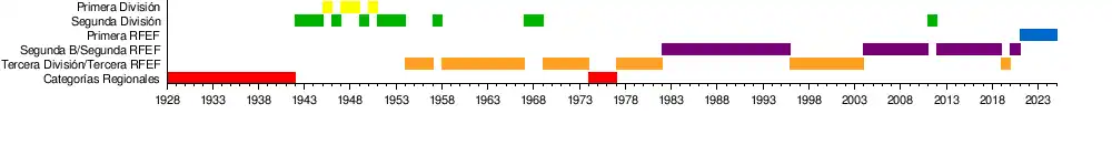 Empieza la década de los 50 en primera división que fue su última temporada, 1950/51, en la máxima categoría hasta la actualidad.