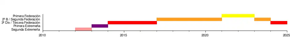 Organigrama deportivoJugadoresDesde la fundación del club en 2012 han vestido su camiseta más de doscientos futbolistas, siendo David Gascón Cordero el máximo goleador de la historia del club con 113 goles en las cuatro temporadas que disputó en el conjunto pacense logrando además 49 goles en 22 partidos en la temporada 2012-13 en Segunda División Extremeña.[47][48]
