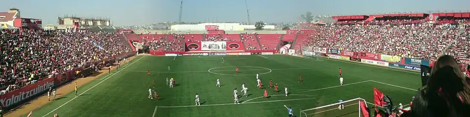 El Estadio Caliente que se encuentra ubicado en el complejo de apuestas Hipódromo de Aguacaliente tenía capacidad para 18,448 espectadores. obtuvo una ampliación de 18,448 a 21.000. Tijuana fue sede del Campeonato Sub-17 de la Concacaf en el mes de abril de 2009. Dicho torneo tuvo que ser suspendido debido al brote de influenza que se registró en el sur del país.[24]​ Posteriormente se realizaron renovaciones en su diseño final aumentando su capacidad para albergar el mundial sub-17 de 2011 de la FIFA, pero en octubre de 2010 fue rechazado el estadio por FIFA para albergar dicho mundial, por lo que se seleccionó al Estadio Corregidora como alterno por si era necesario para partidos.[25]​ ahora el equipo milita en la primera división de México y su estadio obtuvo una ampliación de 21.000 a 22.333 aficionados en el cual los aficionados cada quince días por lo regular lo llenan, Con una cancha de pasto sintético de la más alta tecnología, el fútbol que se desarrolla en el empastado artificial del Estadio Caliente es de alto nivel.