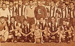 En 1944, aunque luego de las tres primeras fechas del campeonato oficial el «rodillo» se encontraba puntero y en calidad de invicto,[20] finalizó el torneo en la última posición,[21] por lo que debió disputar el derecho de permanencia en la máxima categoría con el campeón de la División de Ascenso Bernardo O'Higgins,[22][21] en lo que fue la primera definición de ascenso en el fútbol profesional chileno.[23]