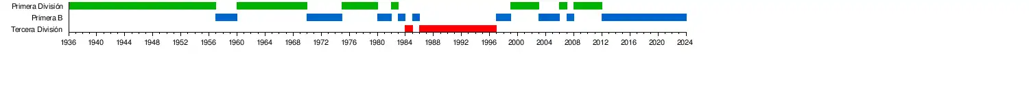 - Temporadas en Primera B: 31 (1957-1959, 1970-1974, 1980-1981, 1983, 1985, 1997-1998, 2003-2005, 2007, 2012- )