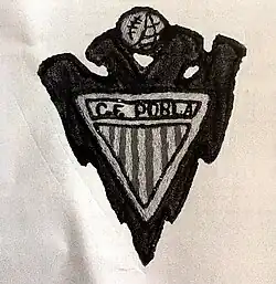 Durante el año 1935, el equipo también cambió de nombre, de colores y de escudo. Desde entonces el club se pasaba a decir Atlètic Esport Club Pobla y las nuevas camisetas, regaladas por el empresario Francesc Cases, eran de rayas blancas y rojas, un uniforme que todavía hoy es vigente. En lo que respecta al nuevo escudo, era triangular, tenía los colores de la Señera y también incorporaba dos rasgos distintivos del pueblo: las dos torres y las parrillas del escudo de la Casa Llorens y Torres, elementos que hoy en día también figuran al escudo de la localidad.