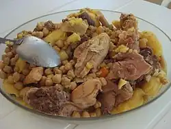 El cocido andaluz se trata de una elaboración culinaria que incluye como legumbre los garbanzos y habichuelas.[1] Suele añadirse carne de vacuno (generalmente morcillo), tocino, costillas. Una de las características de este cocido español es la mezcla de garbanzos y habichuelas. Todas ellas mezcladas con patatas y calabazas. A todo ello se añaden embutidos tales como chorizos y morcillas.