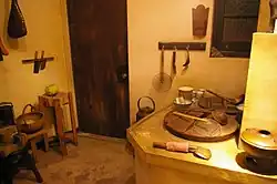 En Connecticut, como en otras colonias de Nueva Inglaterra durante la América colonial, las cocinas a menudo se construían como habitaciones separadas y se ubicaban detrás del salón y el cuarto de servicio o comedor. Un registro temprano de una cocina se encuentra en el inventario de 1648 de la propiedad de John Porter de Windsor, Connecticut. El inventario enumera los bienes en la casa "sobre el kittchin" y "en el kittchin". Los artículos enumerados en la cocina eran: cucharas de plata, peltre, latón, hierro, armas, municiones, cáñamo, lino y "otros implementos sobre el cuarto".[8]