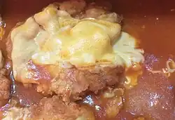 - Bife à parmegiana: filete frito, que consiste en un trozo de carne en rodajas, empanado con harina de trigo y huevos (claras de huevo), cubierto con queso parmesano y mucha salsa de tomate y condimentos como orégano al gusto. A veces, el parmesano reemplaza las rebanadas de mozzarella. Aunque es un plato inventado en Brasil y típico de la cultura brasileña, generalmente, en el propio país, se considera una receta italiana.