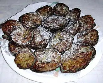 - Melanzane ripiene (Mulingiani chini, spesso imbottite a spicchi con salsa di cipolla e pomodoro, con caciocavallo, con altri formaggi o con farciture miste)