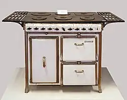 El inventor canadiense Thomas Ahearn registró la patente nº 39916 en 1892 para un «horno eléctrico»,[4] un dispositivo que probablemente empleó ese año en la preparación de una comida para un hotel de Ottawa.[5] Ahearn y Warren Soper eran propietarios de la Chaudiere Electric Light and Power Company de Ottawa.[6] La cocina eléctrica se exhibió en la Exposición Universal de Chicago de 1893, donde se mostró un modelo de cocina electrificada. A diferencia de la cocina de gas, tardó en imponerse, en parte debido al desconocimiento de la tecnología y a la necesidad de electrificar ciudades y pueblos. Para la década de 1930, la tecnología había madurado y la estufa eléctrica estaba reemplazando lentamente a la estufa de gas, especialmente en los hogares.